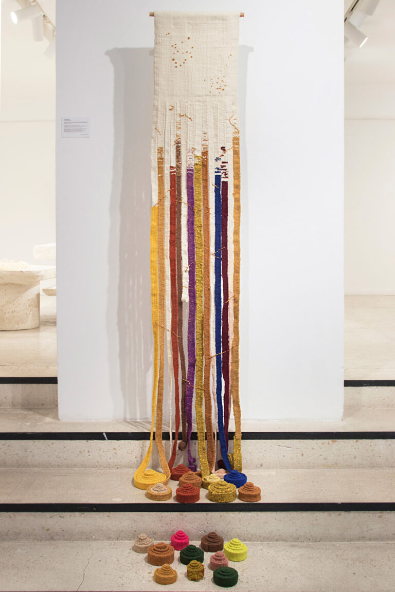 Dans ses travaux, Candice Aubert-Dhô associe son savoir-faire, le tissage, à son engagement éthique. Elle utilise ainsi la laine mérinos d’Arles pour créer des œuvres qui questionnent.