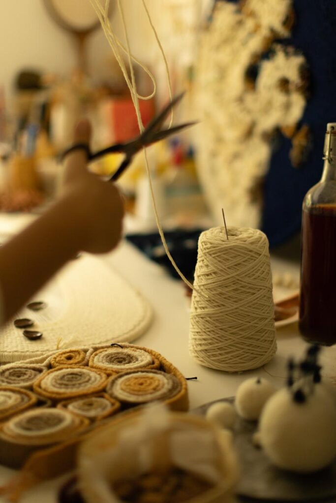 Je suis Candice Aubert-Dhô, artiste textile et artisane d’art engagée en faveur de la filière laine française, membre de Résolaine – orchestré par Lainamac, soutenue par la Fondation Bettencourt.