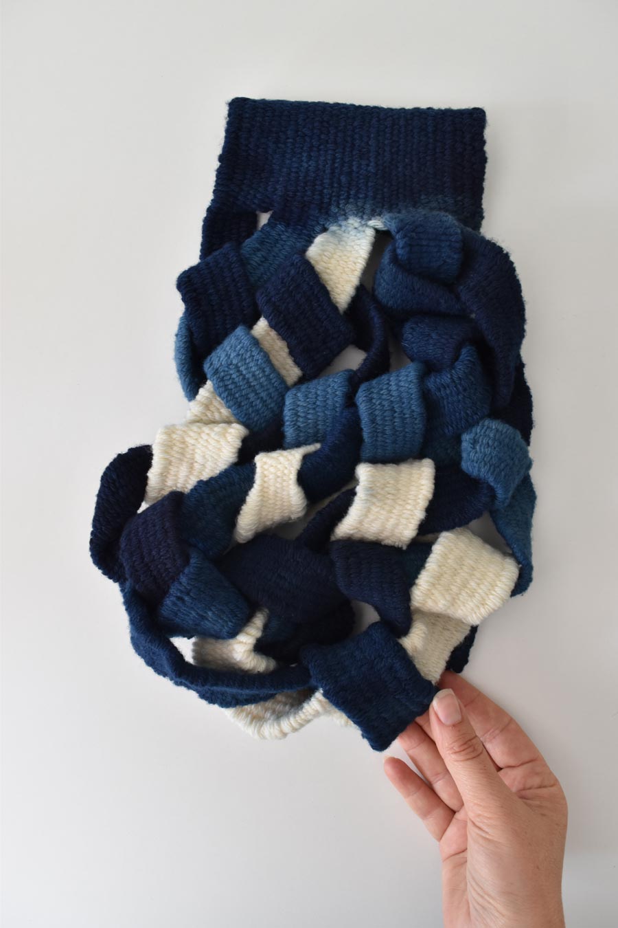 En effet, le sourcing de mes matières premières est l’un des fondements de ma démarche : laines artisanales françaises, matières recyclées ou revalorisées, upcycling et collaboration avec d’autres artisanes sont à retrouver ici.